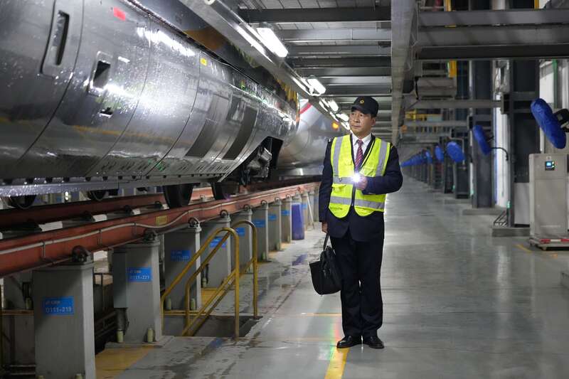 中国青年报客户端讯(宋承洋 吕钟 中青报·中青网记者 雷宇)“雨刷、标志灯、头罩……外观良好!”2月2日0时38分,武汉动车基地内灯火通明,武昌南机务段武汉动车运用车间地勤车队动车组司机杨斌正检查着复兴号动车组,洪亮的呼唤声在基地内回荡。