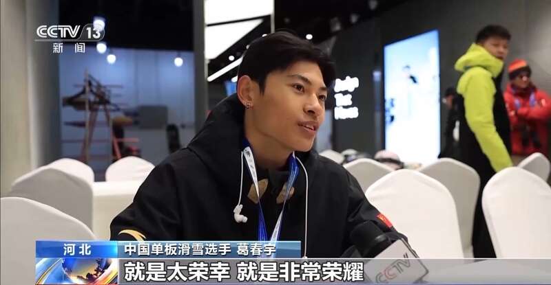 中国单板滑雪选手 葛春宇:我觉得我作为运动员,能参加米兰奥运会就是太荣幸,就是非常荣耀,所以我就给自己定下目标,我就开始努力地去练习,练习就是训练,再去创新动作。