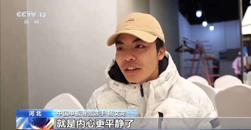 中国单板滑雪选手 杨文龙:就是内心更平静了,以前比赛总是紧张,总是想东想西,可是这两年,尤其是从去年开始,就是每次比赛只专注于自己的动作。