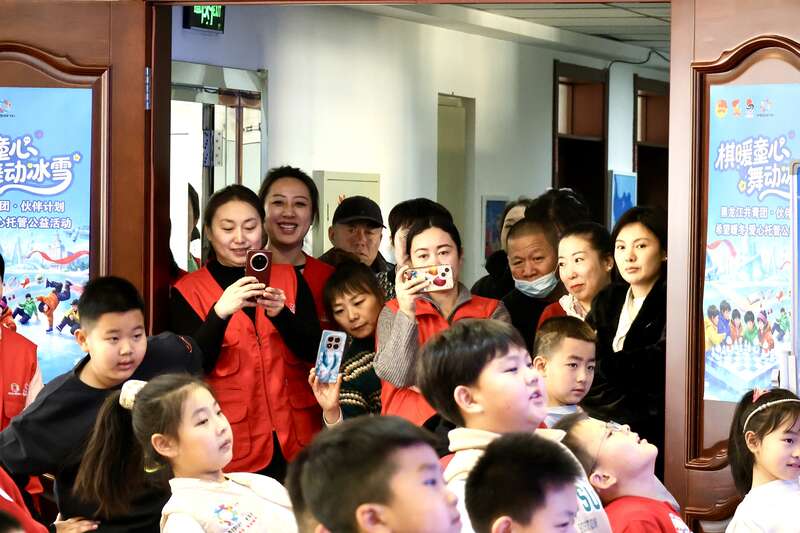 1月14日,哈尔滨,40名新就业群体的未成年子女参加了黑龙江共青团·伙伴计划试课活动。家长及工作人员拿起手机,记录孩子们跳街舞。中青报·中青网记者 杨雷/摄