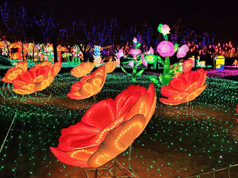 走向京郊,年味呈现出另一番热烈与温情。顺义鲜花港的第三届顺义文旅集团鲜花港彩灯大世界以“花神贺春”为主题,用“十二花神卷轴”“顺义八景”等超大型灯组点亮夜空,配合非遗打铁花和花神巡游,营造出梦幻的沉浸式体验。
