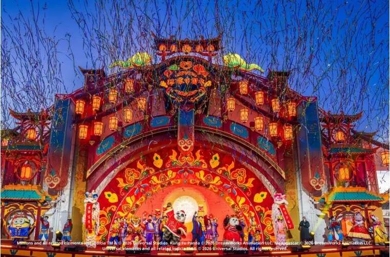 北京城市副中心文化旅游区也处处洋溢着浓浓的年味。环球度假区、湾里国际商业娱乐综合体等旅游地标共同营造“马跃福至”的欢庆氛围。1月23日至3月3日,北京环球度假区“环球中国年”融合国际主题公园氛围与传统年味,推出新春特别演出《团圆啦!》,刀马旦、川剧变脸等传统艺术与国际IP同台,角色新春盛装巡游、特色装饰与年味餐饮带来沉浸式体验。湾里国际商业娱乐综合体以“来湾里,过中国年”为主题,打造六大场景体验,共同编织出一幅文化浓郁、喜庆团圆的副中心新春图景。