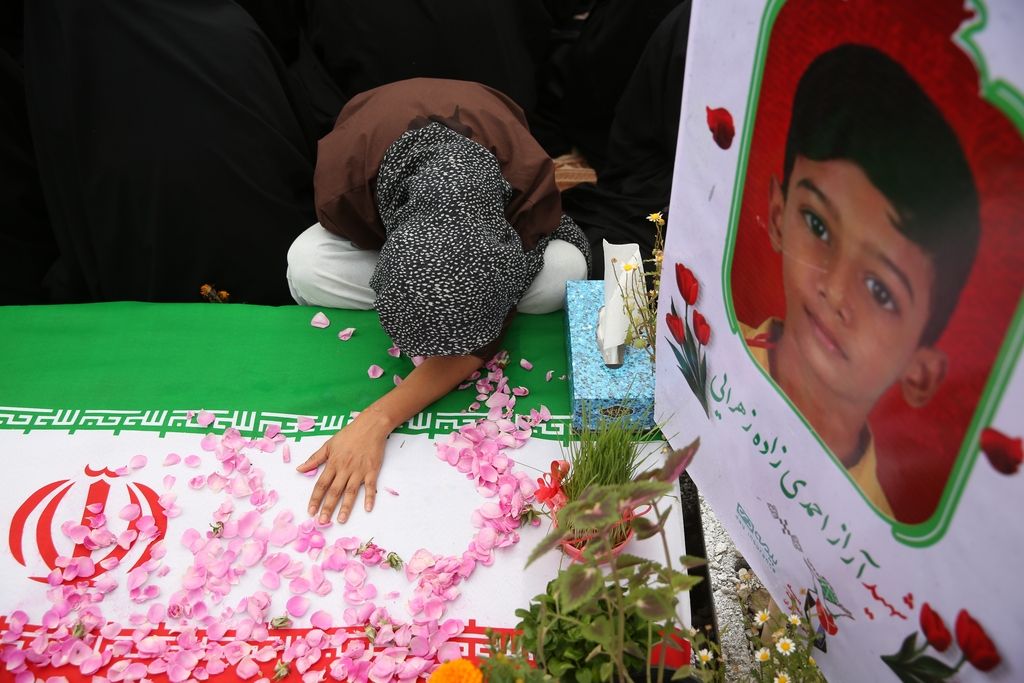 当地时间2026年3月20日,伊朗霍尔木兹甘省,民众聚集在公墓悼念在米纳布市一所女子小学遭美以袭击遇难的受害者,其中大多数是儿童。这些受害者于2月28日美国和以色列对伊朗发动的首轮袭击中丧生,当时该市的这所女子小学成为袭击目标。