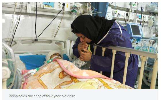 这名伊朗母亲痛苦地哀求着,祈祷昏迷中的孩子能睁眼,再看看她。