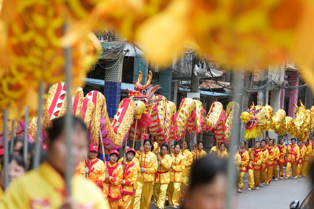 2026年3月21日,广西龙州县,正在举行的2026年中国(龙州)·越南(高平、谅山)边关“春龙节”上演“春龙巡游暨非遗展演”,十余支春龙队伍沿着街道巡游,集中展示非遗技艺与民俗风情,让民众近距离感受传统文化的魅力。 中新社记者 陈冠言 摄