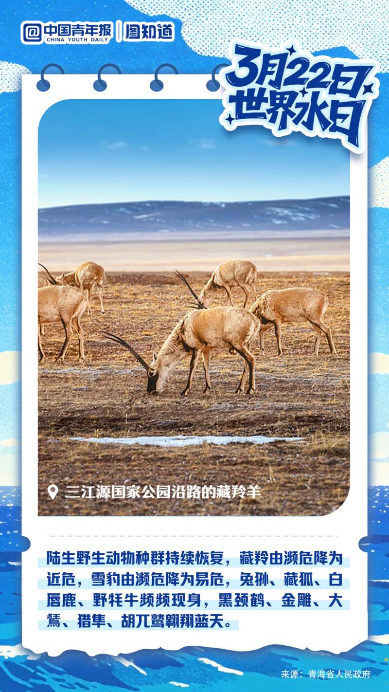 中国青年报客户端 | 2026-03-22 07:00电视剧《生命树》的热播,让人们再次关注到世所罕见的神奇之地——三江源,长江、黄河、澜沧江发源于此,由此奔流而出的水滋养了无数生命。2026年,是三江源国家公园正式设立五周年,“中华水塔”更加坚固充沛。在#世界水日#到来之际,一起再看三江源之变。