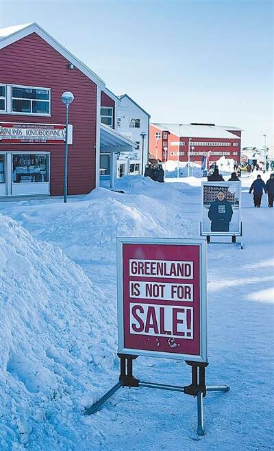 在格陵兰岛首府努克,街道上是安静往来的行人和川流不息的车辆,海港有捕鱼归来的小船和盘旋空中的海鸟。在市中心商业街,一家商店门口摆放着印有“格陵兰岛不出售”的帽衫海报。店员说:“这个系列的衣服和布包很受欢迎,经常销售一空。”