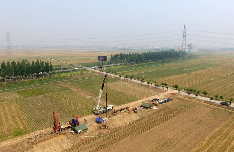 2017年2月,习近平总书记专程到河北省安新县大王镇小王营村实地察看规划新区核心区概貌。2017年4月1日,新华通讯社受权发布:中共中央、国务院决定设立河北雄安新区。这是2017年7月1日,工作人员在河北省安新县大王镇开展地质调查,建立不同空间尺度四维地质模型,支撑雄安新区规划建设。