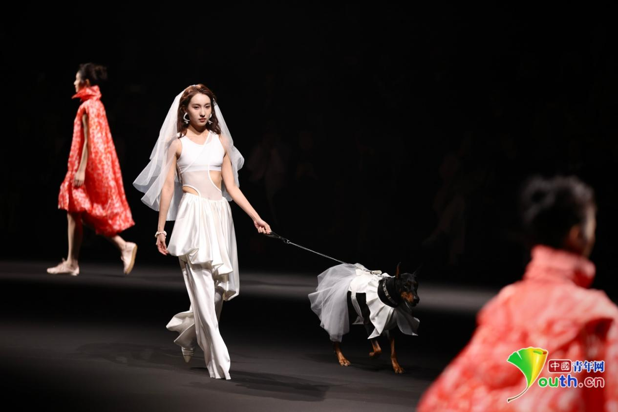 3月23日,北京798·751园区,2026中国国际时装周(春季)迪尚·万岚“北服日”秀场,模特正与宠物同台走秀。据了解,这一专场大秀共展示了50套高级女装成衣。本季中国国际时装周紧扣商务部新消费、新场景、新动能政策导向,呼应北京国际消费中心城市建设,聚焦东方美学与非遗创新、数智科技赋能、绿色可持续发展、提振时尚消费四大主题,以“锐意新生”为核心主题,汇聚10余个国家和地区、230余个品牌、近400位设计师,带来160余场专业秀展活动,规模再创新高。记者 杨逸凡/摄