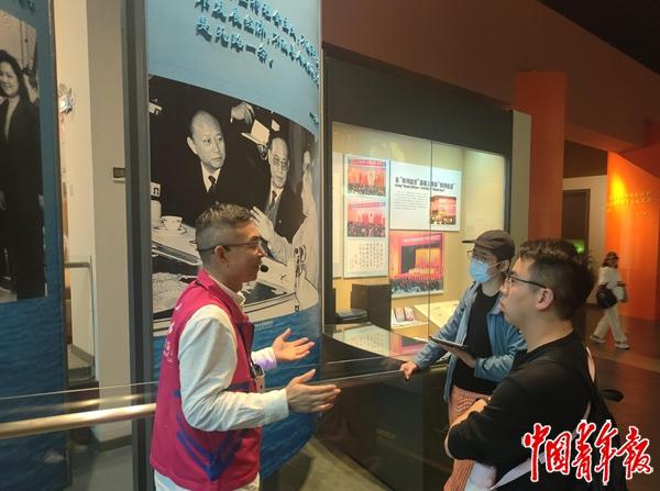 志愿讲解员吴志刚正在馆内讲解。