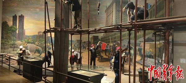 展厅中还原了国贸大厦建设时的场景。