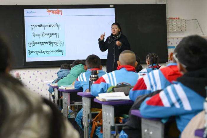 3月2日,西藏拉萨市第一小学的学生在上藏语文课。进入三月,拉萨各学校迎来2026年春季学期开学。