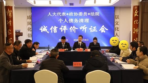 公示期结束后,诚信评价工作小组会收集当地群众提供的债务人信息线索。准备好这些后,他们才会召开听证会。2023年至今,天台法院在每个乡镇街道基本上都开过一场听证会。