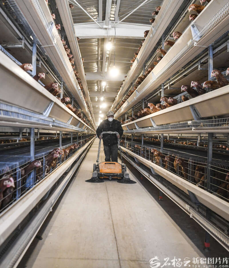 4月8日,养殖户使用自助式清扫机清洁鸡舍。位于乌鲁木齐市米东区三道坝镇东滩村的蛋鸡养殖基地总建筑面积2400平方米,实现喂料、饮水、环境调控全流程智能化管理,目前,首批2.9万羽青年蛋鸡已入栏,全部投产后,5.8万羽蛋鸡产蛋高峰期日产蛋量可达3.2至3.6吨。石榴云/新疆日报记者 汤永摄