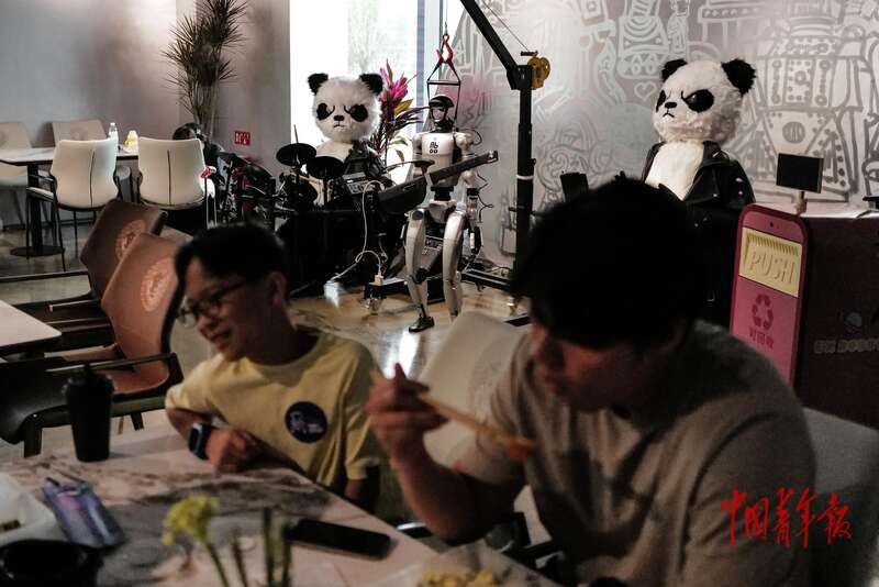 4月19日, 北京经济技术开发区,智能机器人主题2.0餐厅,机器人乐队在顾客用餐时“伴奏”。中青报·中青网记者 赵迪/摄