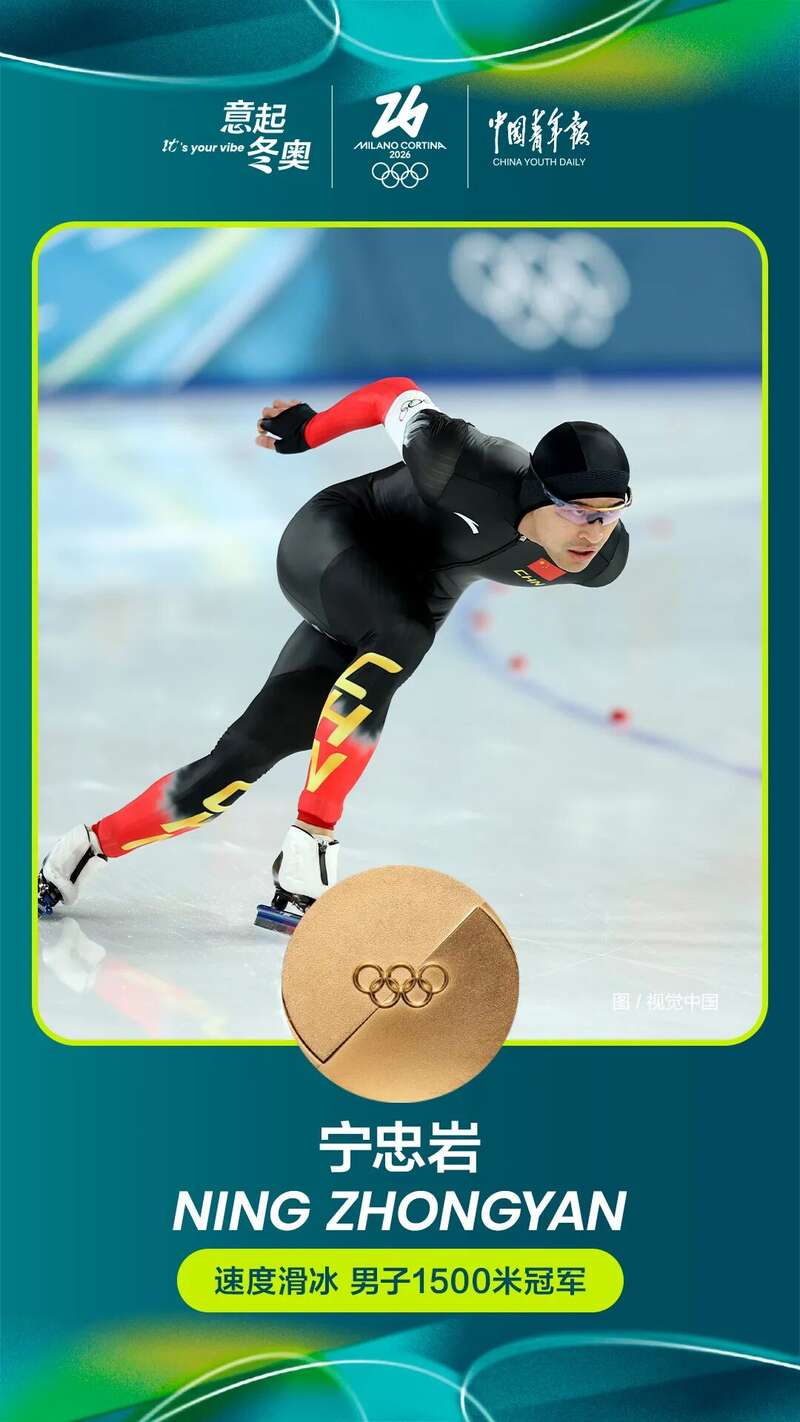 意大利当地时间2月19日下午,2026年米兰冬奥会速度滑冰男子1500米比赛在米兰速度滑冰馆展开。第13组出场的中国队选手宁忠岩以1分41秒98的成绩夺得金牌,创造了新的冬奥会纪录!这是宁忠岩在米兰冬奥会上收获的第三枚奖牌,此前他还摘得了速度滑冰男子1000米铜牌,并与队友一起夺得了速度滑冰男子团体追逐项目的铜牌。