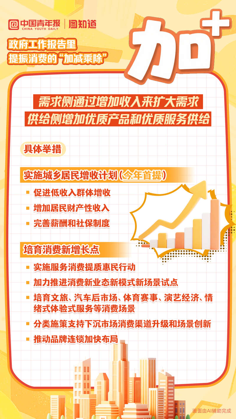 中国青年报客户端 | 2026-03-06 16:33今年的《政府工作报告》提出,要通过激发居民消费内生动力和促消费政策并举来提振消费。《政府工作报告》已经连续两年把扩大内需放在工作任务的第一条,特别是把“实施提振消费专项行动”摆在突出的位置。3月5日,在解读2026年《政府工作报告》的吹风会上,《政府工作报告》起草组负责人、国务院研究室主任沈丹阳用“加、减、乘、除”形象回答如何根本上解决“供强需弱”的问题。