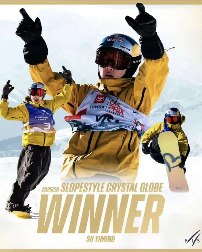 北京时间3月28日,国际雪联宣布苏翊鸣斩获2025至2026赛季国际雪联单板滑雪男子坡面障碍技巧世界杯赛季总冠军。