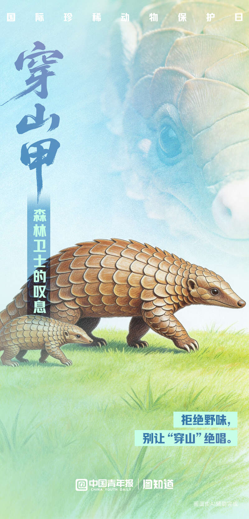 每一次物种消亡,都是大自然敲响的警钟。拒绝野味、抵制野生动物制品、减塑生活,您的每一次举手之劳,都在为它们续写生机。守护它们,就是护佑人类的明天。