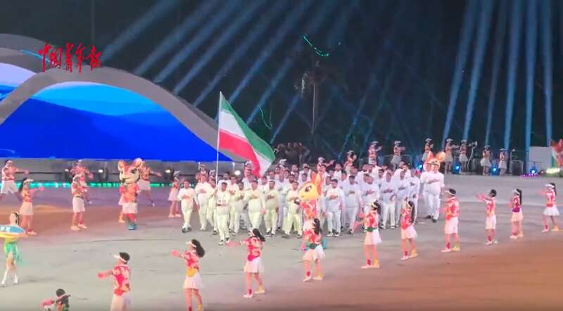 伊朗代表团如约参加三亚亚沙会 入场仪式全员手放胸前