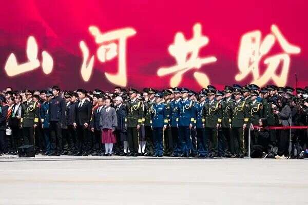 △4月22日,第十三批在韩中国人民志愿军烈士遗骸迎回仪式现场。各界代表整齐列队,欢迎烈士回家。这已是中国第13次迎接志愿军烈士归来。执行此次接迎任务的,是空军运-20B,这是该型国产运输机首次飞出国门。飞机呼号“荣归50”,代表着1950年,首批志愿军战士跨过鸭绿江出国作战。不少人牺牲在了异国他乡,70多年后的今天,人民空军以大国重器接英雄回家。(杨盼/摄 来源:中国青年报今日1版)
