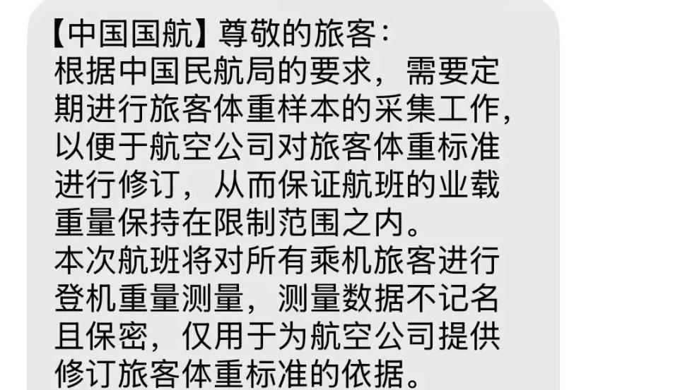 “坐飞机前现场称体重”引热议!国航回应