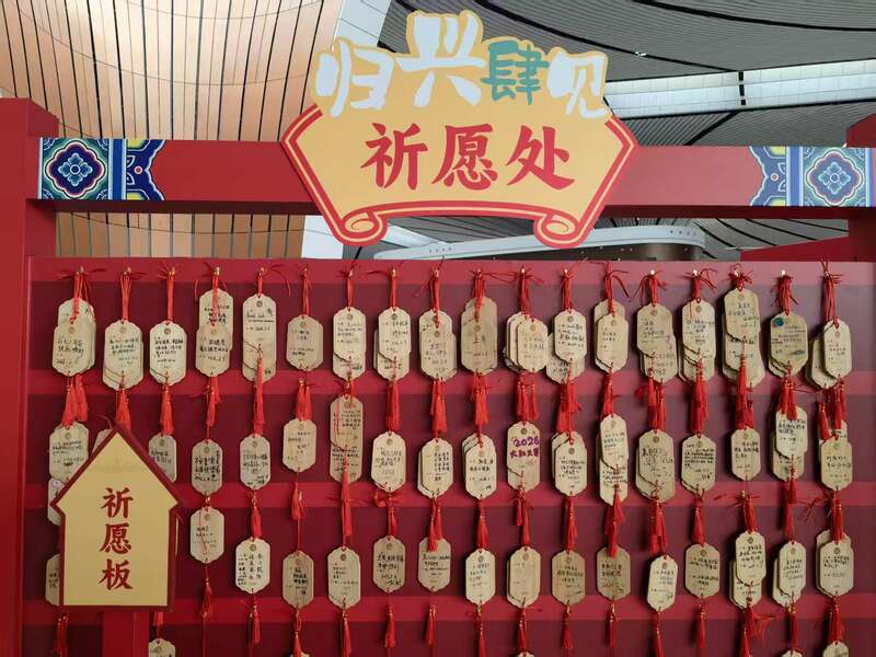 2月6日,“归兴肆见”新春市集的祈愿处,挂满了旅客的新年愿望。中青在线记者 郭艳丽/摄