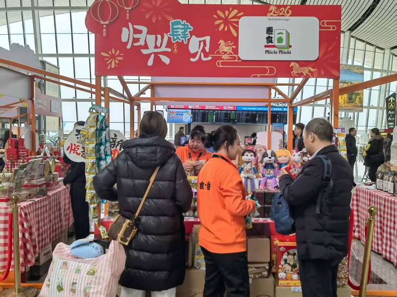 中国青年报客户端北京2月6日电(中青在线记者 郭艳丽)春节渐近,北京大兴国际机场迎来春运客流高峰。一场名为“归兴肆见”的新春市集在这里暖心启幕,为南来北往的旅客提供一站式购置年货新体验,营造出浓厚的春节氛围。
