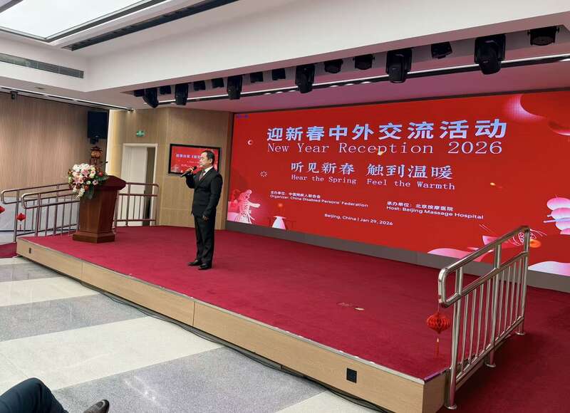 室外寒风凛冽,北京按摩医院的会议室内暖意融融。日前,中青报·中青网记者走进北京按摩医院,参加中国残联举办的“听见新春·触到温暖”2026年迎新春中外交流活动。