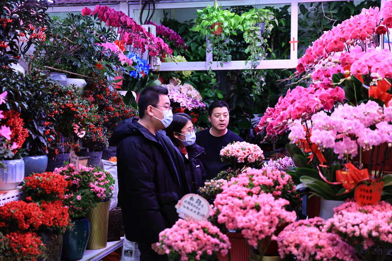 中国青年报客户端北京2月10日电(中青在线记者 于璧嘉)春节临近,宵花市场进入一年中最火热的时段。2月10日,北京海淀区西三旗的花市迎来客流高峰,各类象征着吉祥、喜庆的花卉琳琅满目,吸引众多市民前来选购。商户们忙于打理花束、解答询问,现场洋溢着浓厚的节日气息。